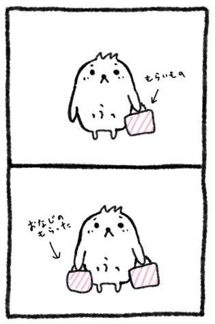 お土産をもらったふにゃまるちゃん。
