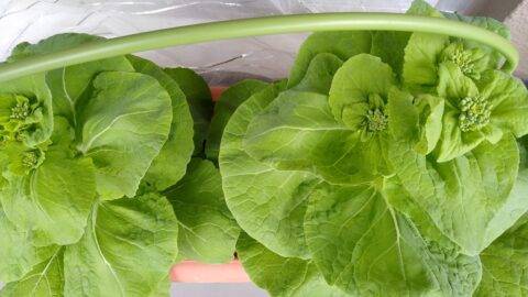 白菜も二株だけ収穫しないでいたら丸まらないで蕾が出始めて…