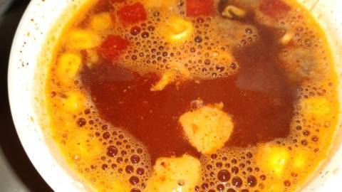カレーが強いのかと思うとチリトマトのトマトの味とスパイシーさが勝つ感じでした!コクがあって満足できるお味でした!