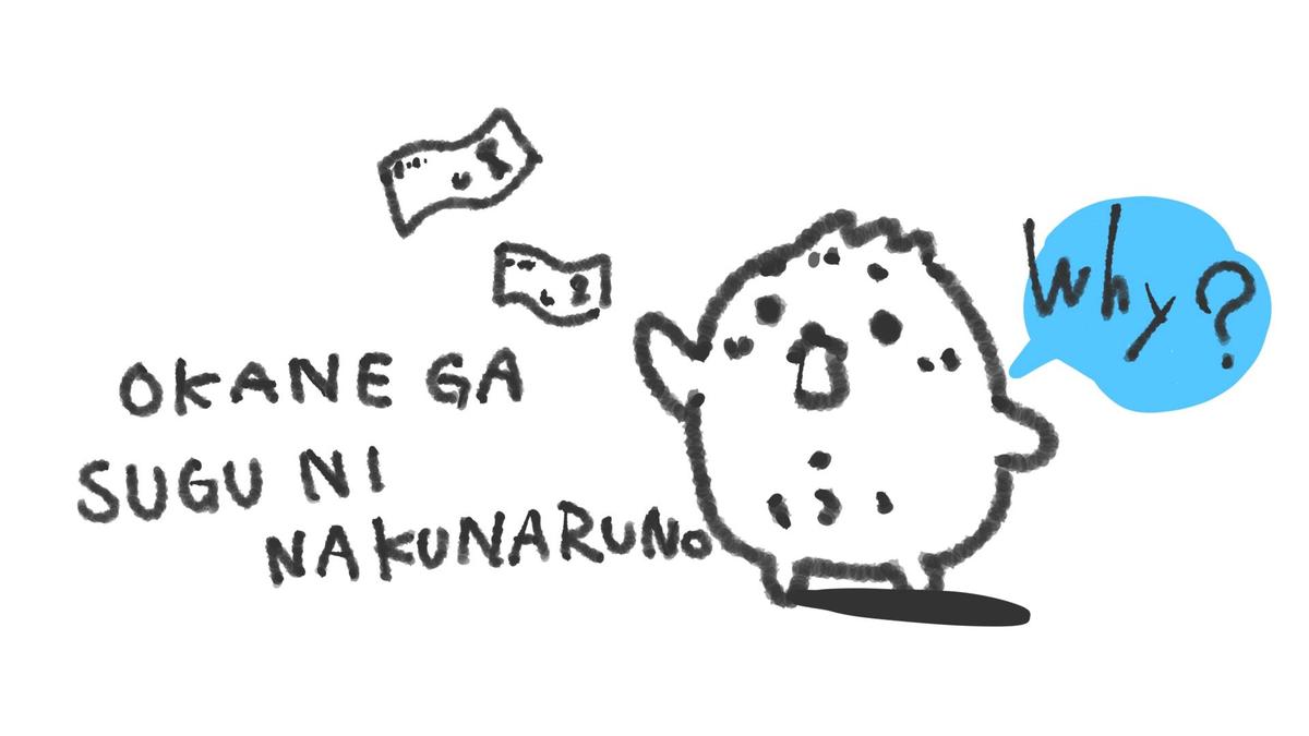 お金が逃げていくようにすぐに無くなって困惑しているナマケモノのふにゃまる