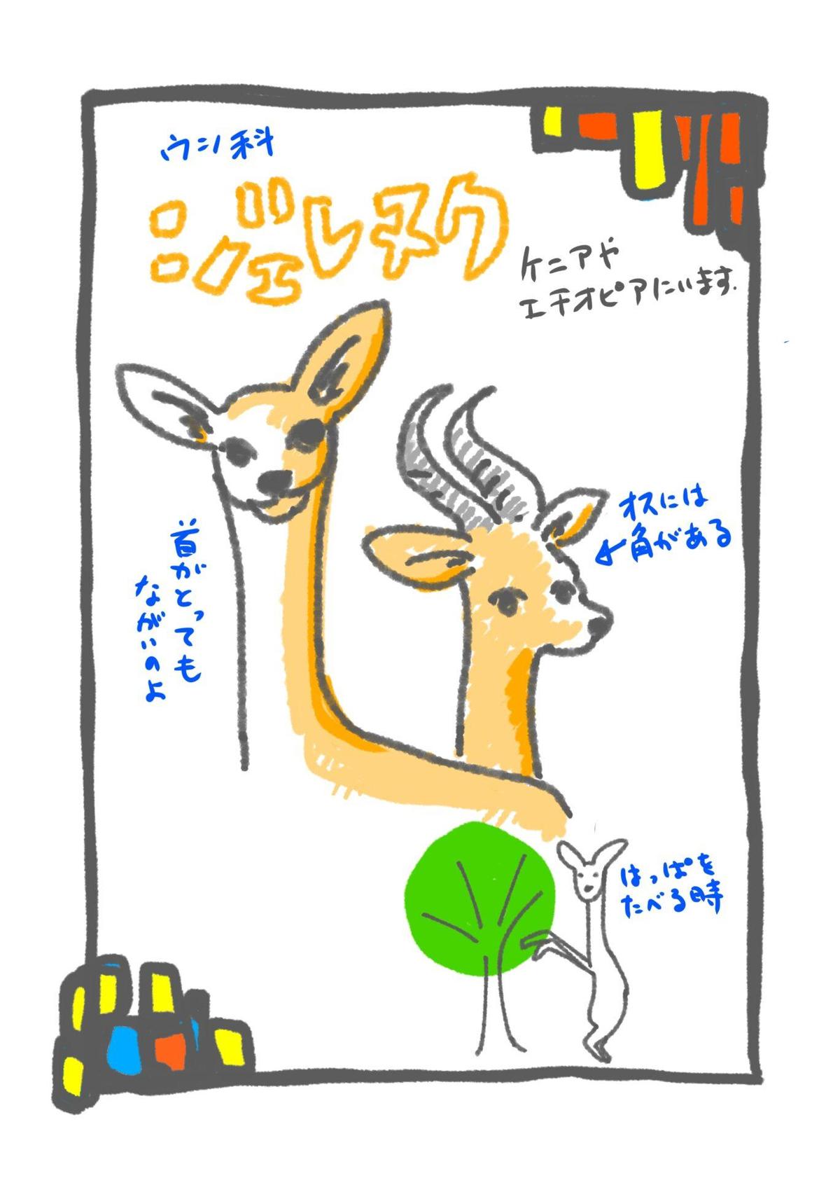シカのような見た目のウシ科の動物ジェレヌクについての概要などを添えて描いたイラスト