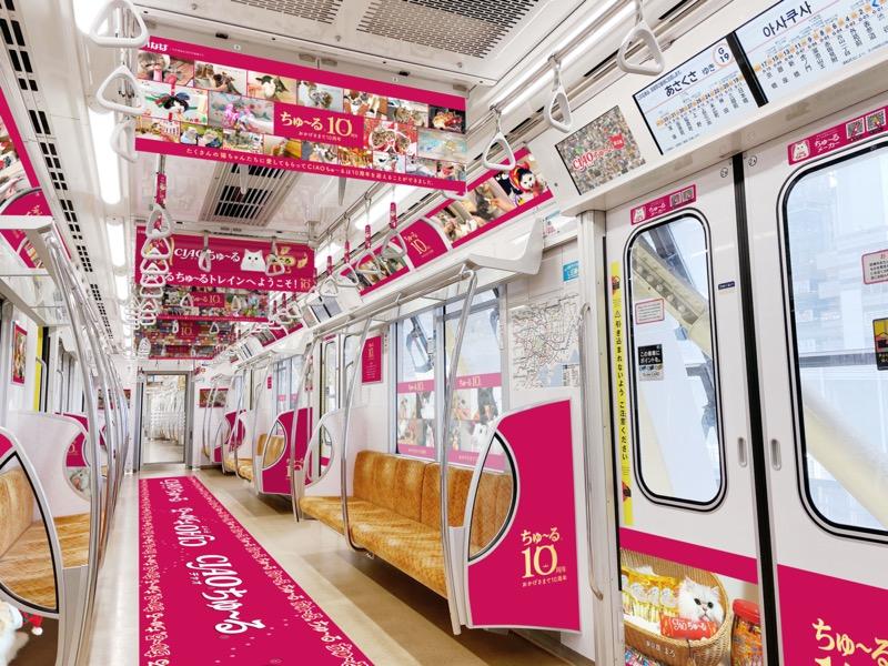 『ちゅ~る ちゅ~るトレイン』の運行期間は、2022年2月20日(日)~3月20日(日)の1か月間で、東京メトロ銀座線 1編成(6車両)東京メトロ丸ノ内線 1編成(6車両)を予定。