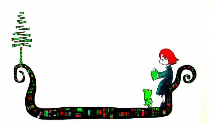 A Journey in Reading: Exploring a Whimsical Mosaic Path Painting