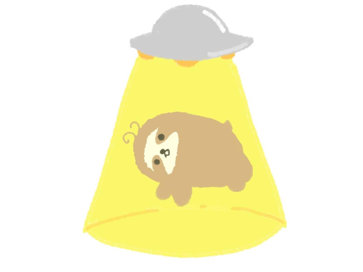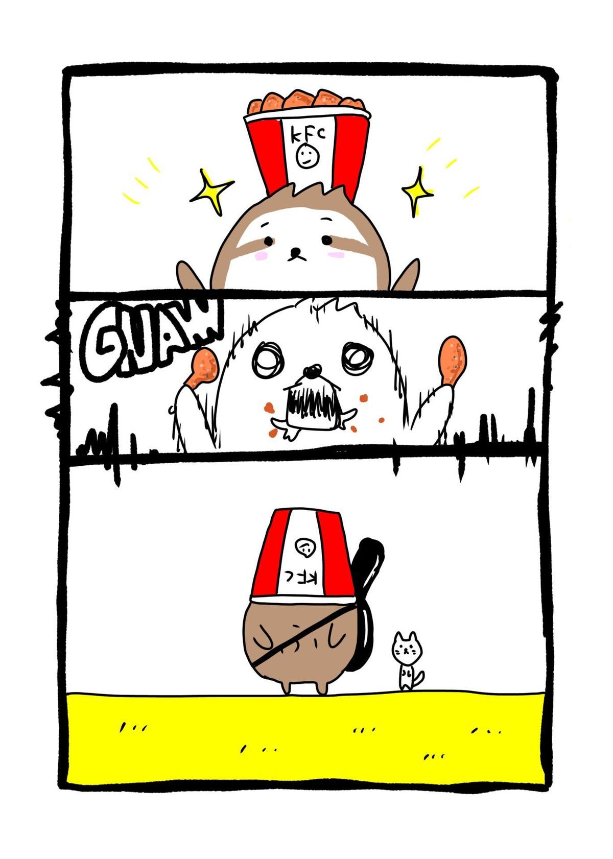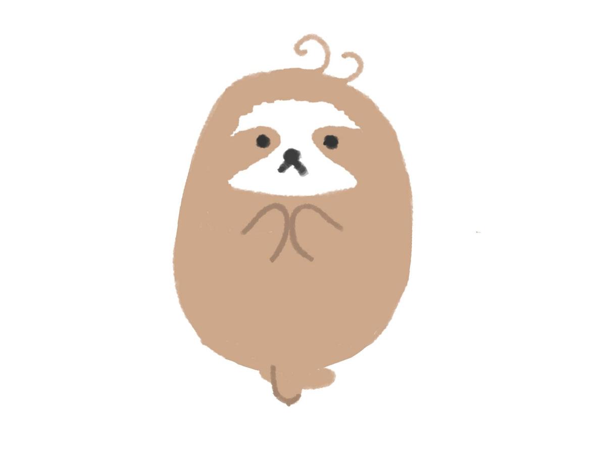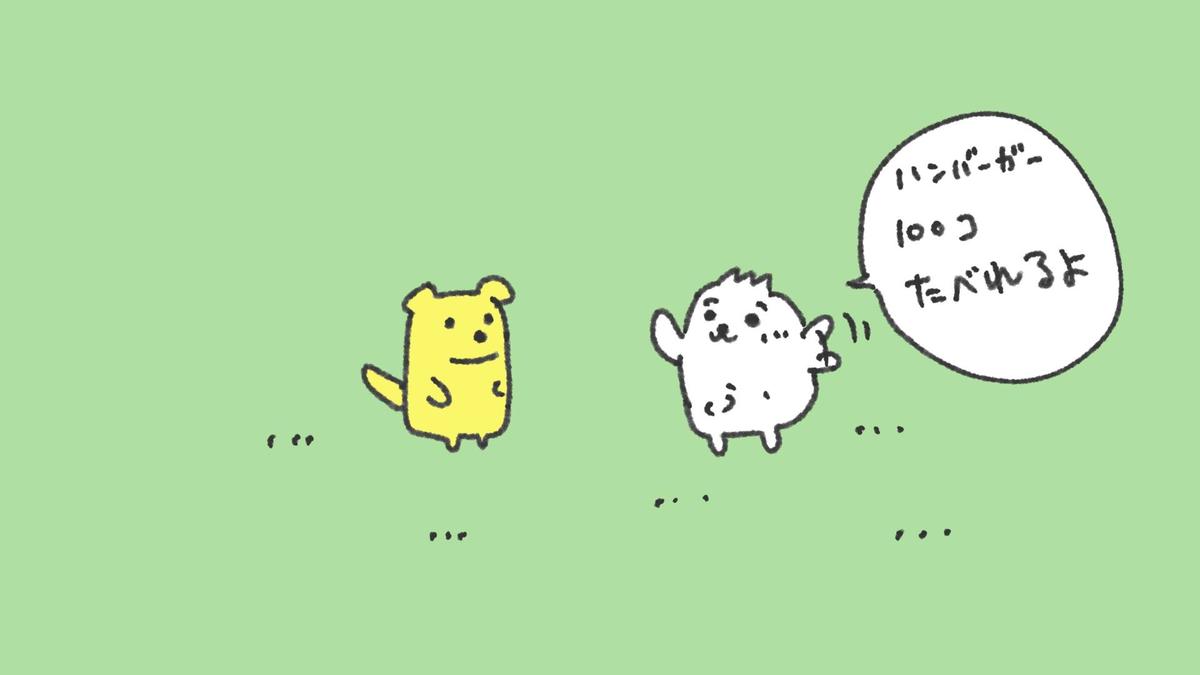 エイプリルフール:「ハンバーガー100個食べれるよ!」と、黄色い犬わんぽんに興奮気味に話すナマケモノのこどものふにゃまる。
