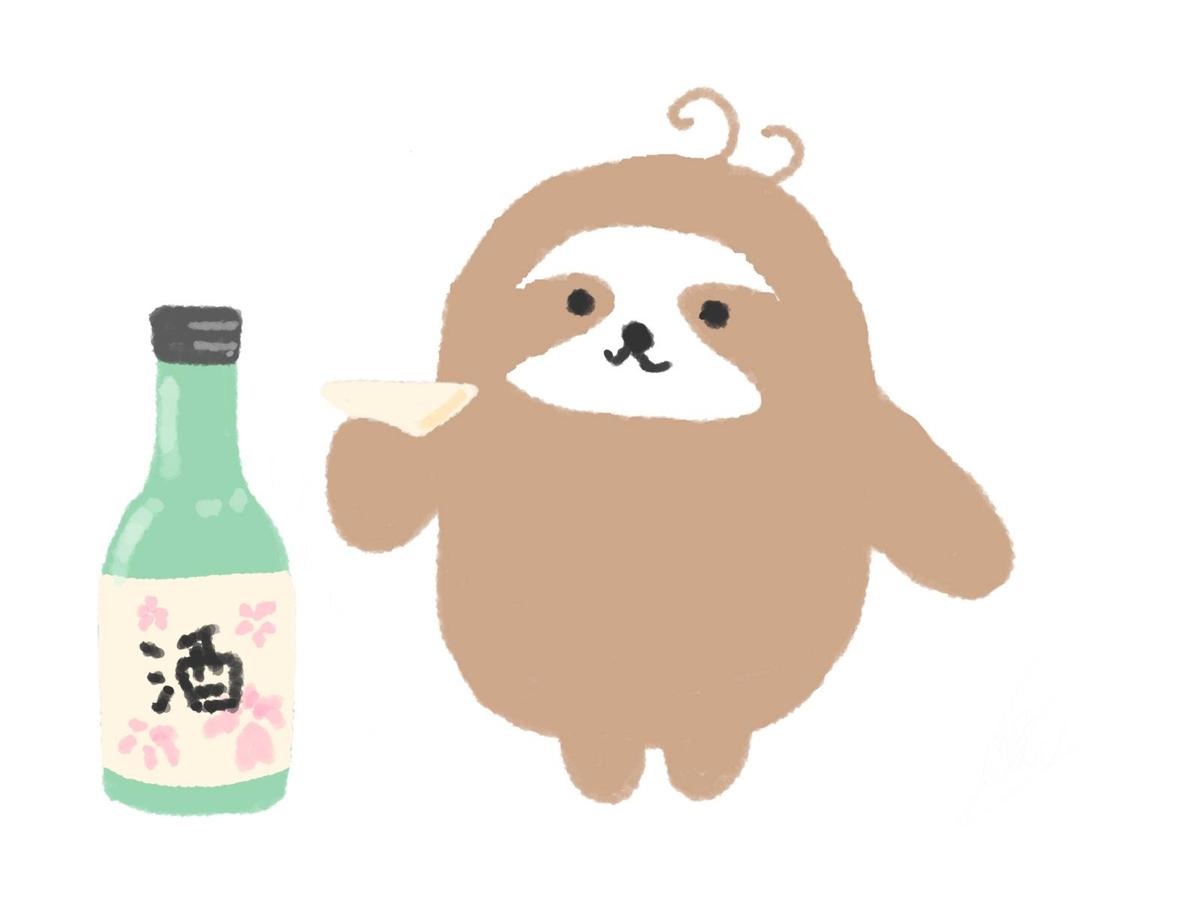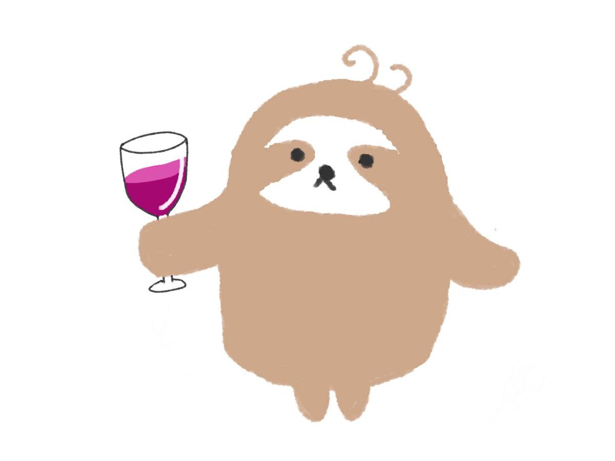 ドイツワインの日:ドイツワインを楽しむナマケモノのイラスト