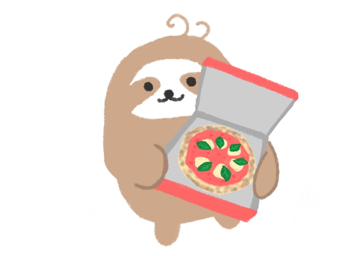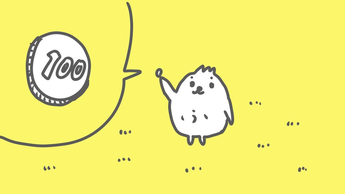 100円を手にもったナマケモノのこどもふにゃまるのイラスト