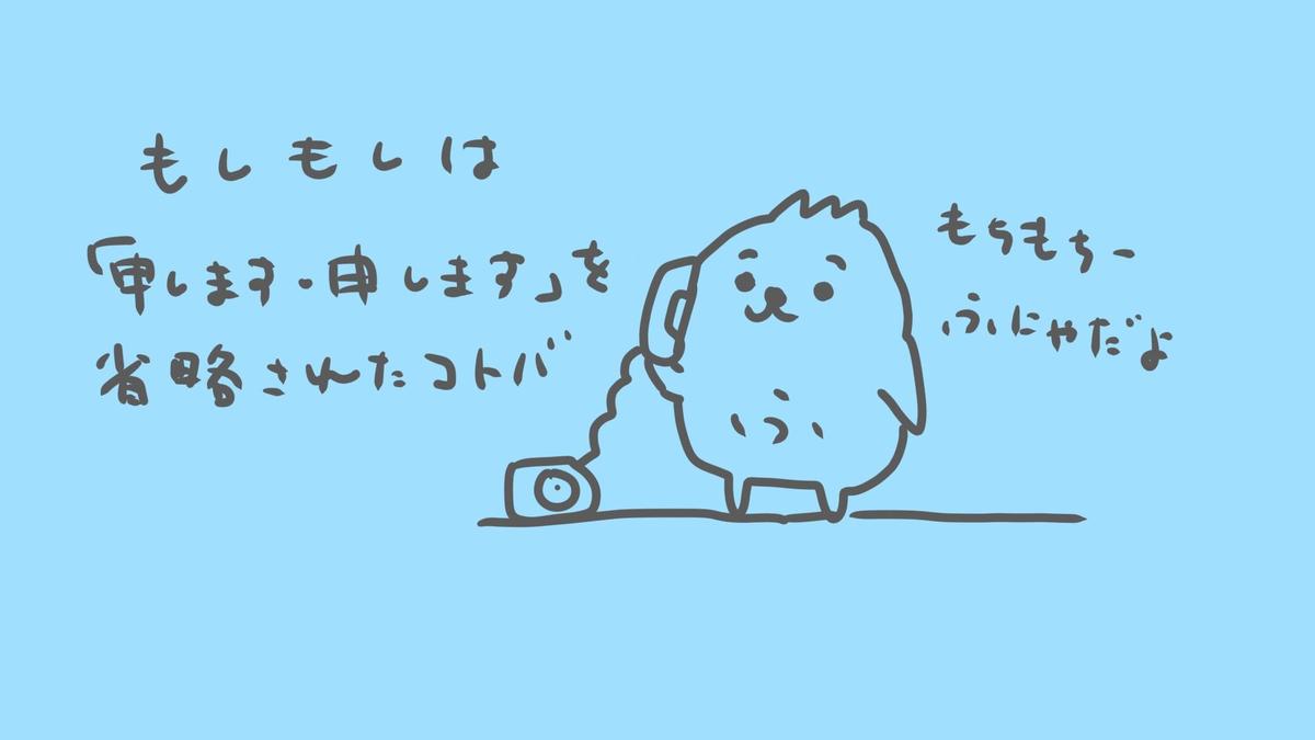 もしもしの由来は「申します申します」から。「もしもし」と電話に出るナマケモノのこどものふにゃまる