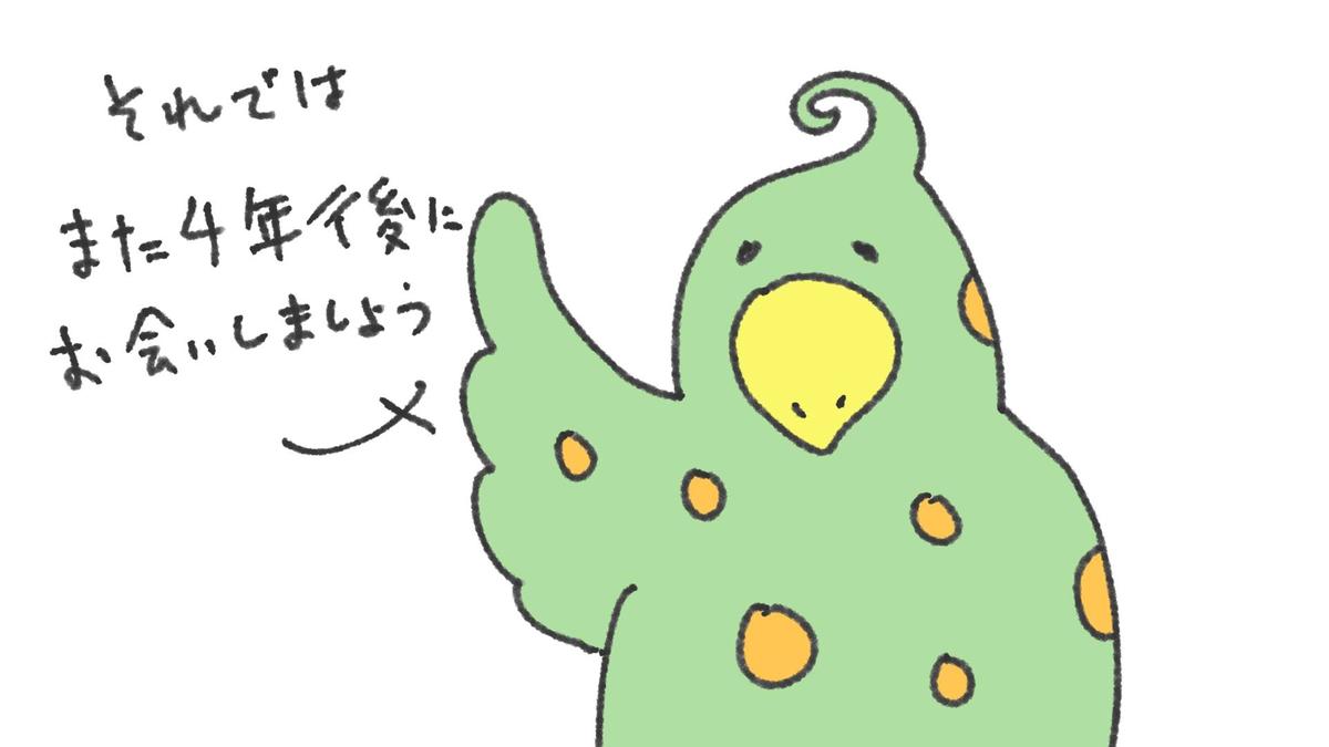 閏年の鳥:また4年後の再開を願って手を降っている