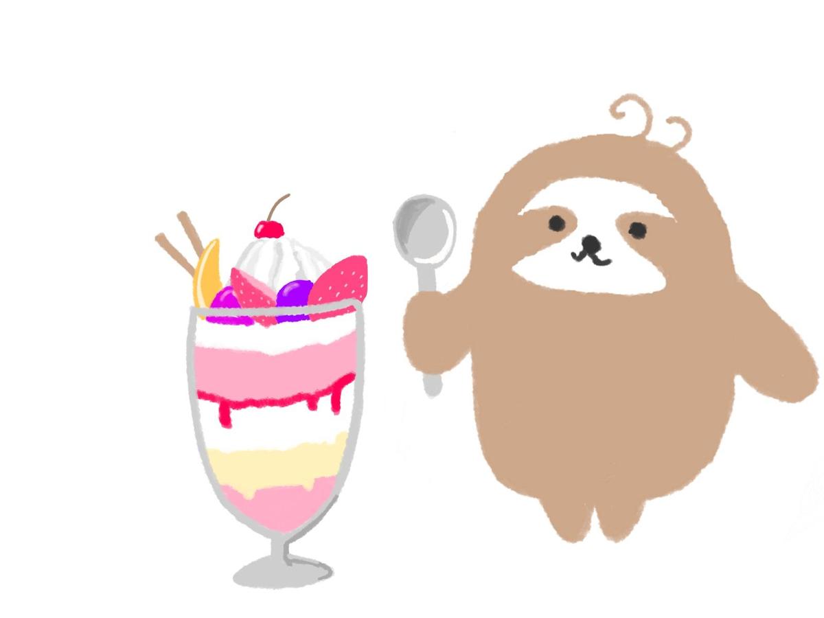 ピンクのビキニを着て立っているナマケモノのイラスト