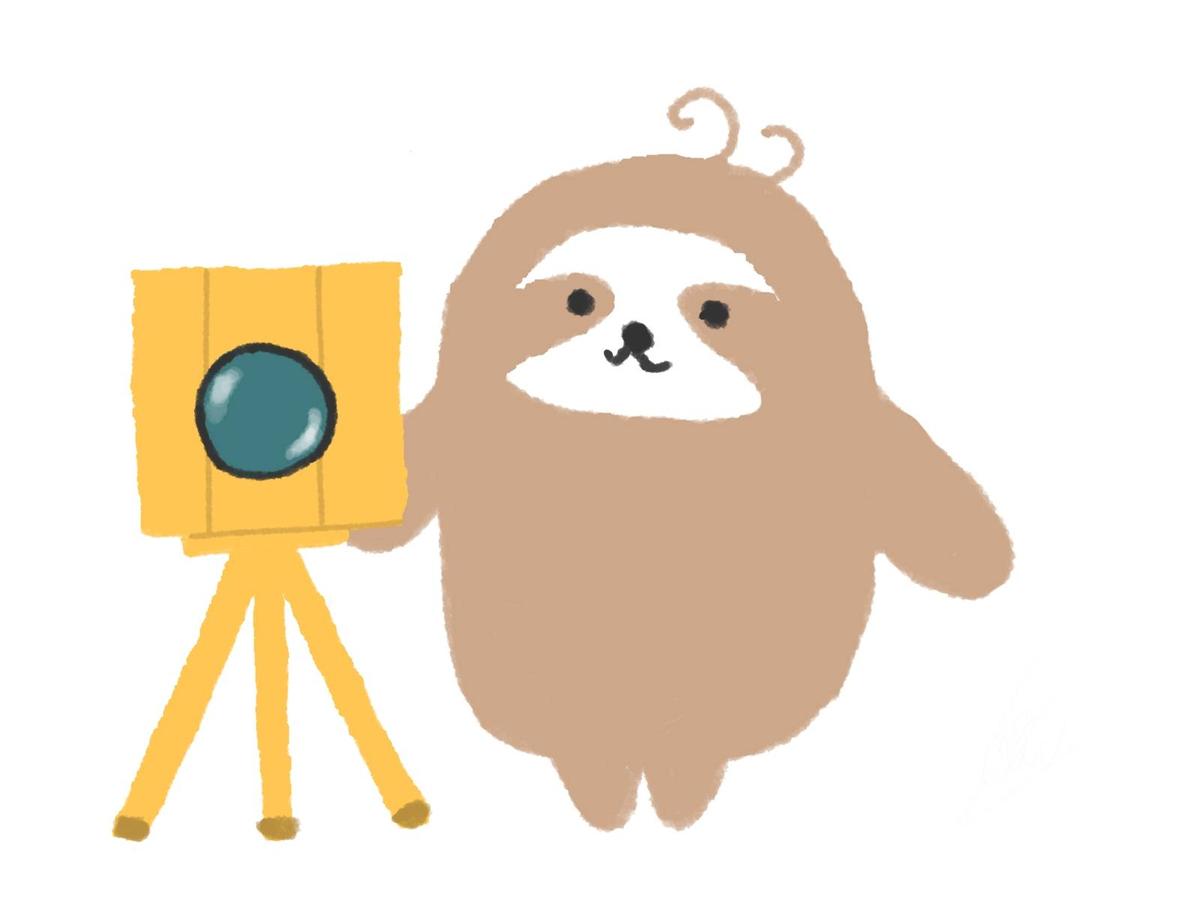 カレーライスをスプーンを持って眺めているナマケモノのイラスト
