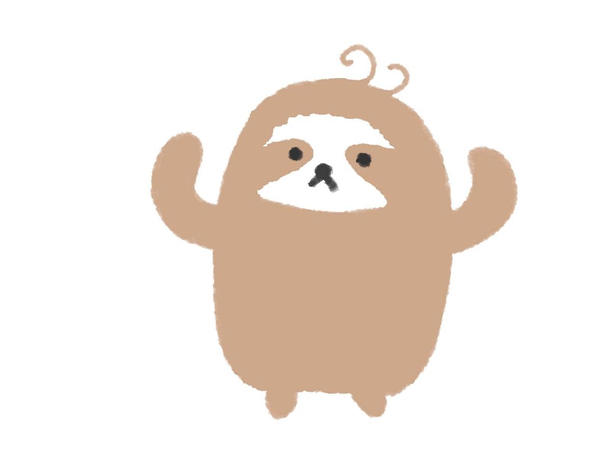 元気なナマケモノ。両手を上げ元気さをアピールしている。