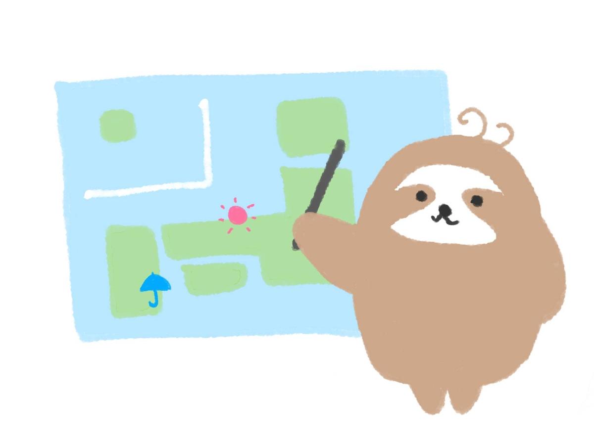 化石とナマケモノ。化石を見つけたナマケモノのイラスト