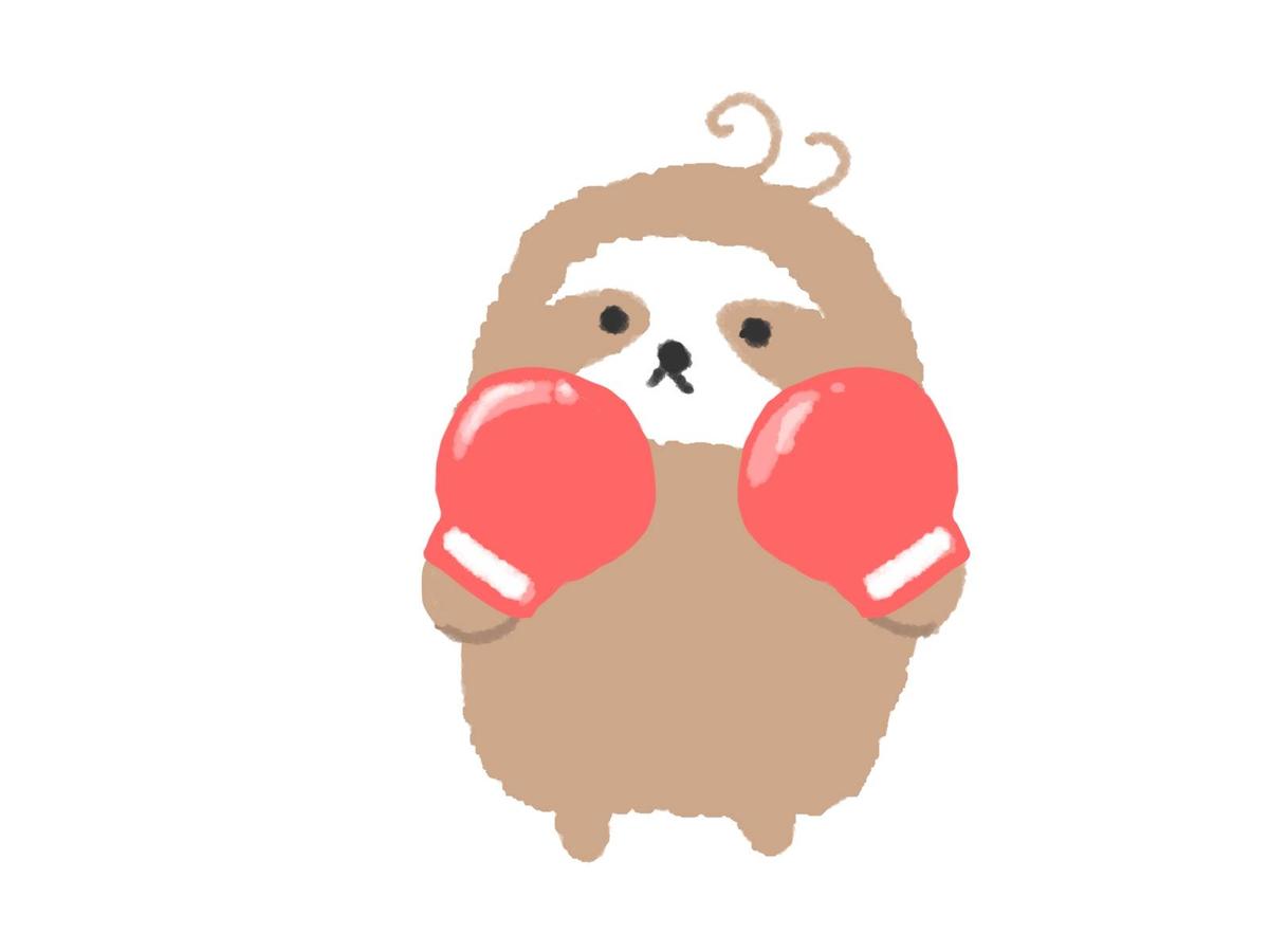 ボクシングをするナマケモノ。赤いボクシンググローブをはめている