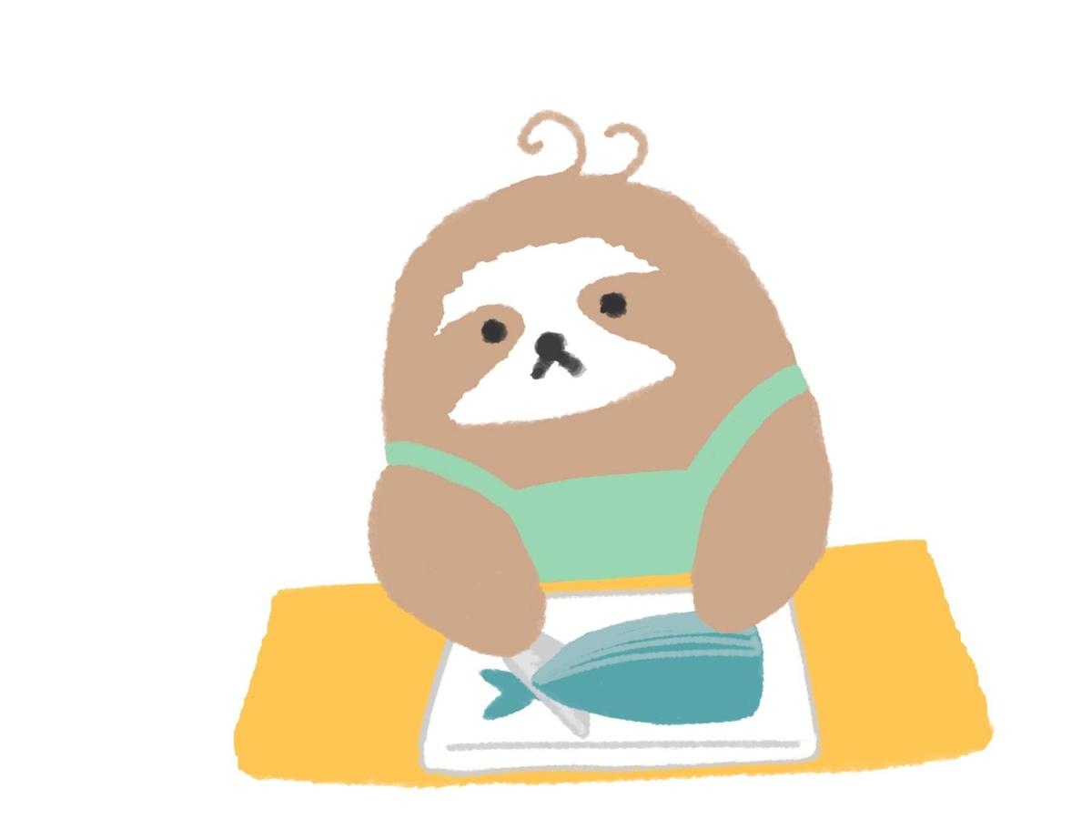 さくらの日:上を見上げるナマケモノのこどものふにゃまる。頭上には桜が舞い散る