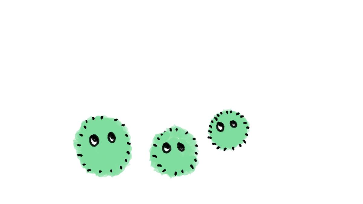 マリモの日:目のついた3つのまりものキャラクター。キョロキョロと周りを見つめている