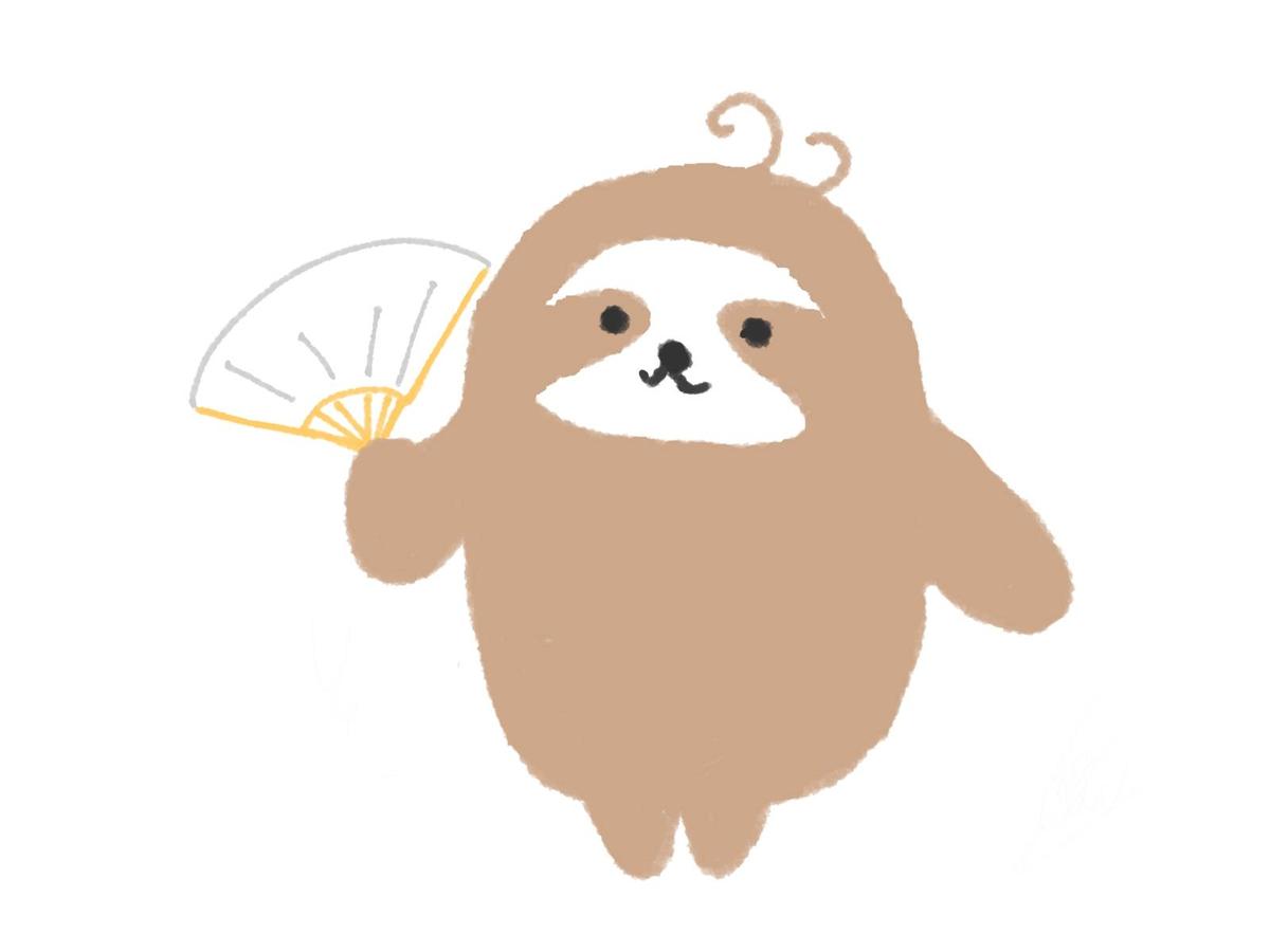 扇の日:右手に扇子を持ち立っているナマケモノ