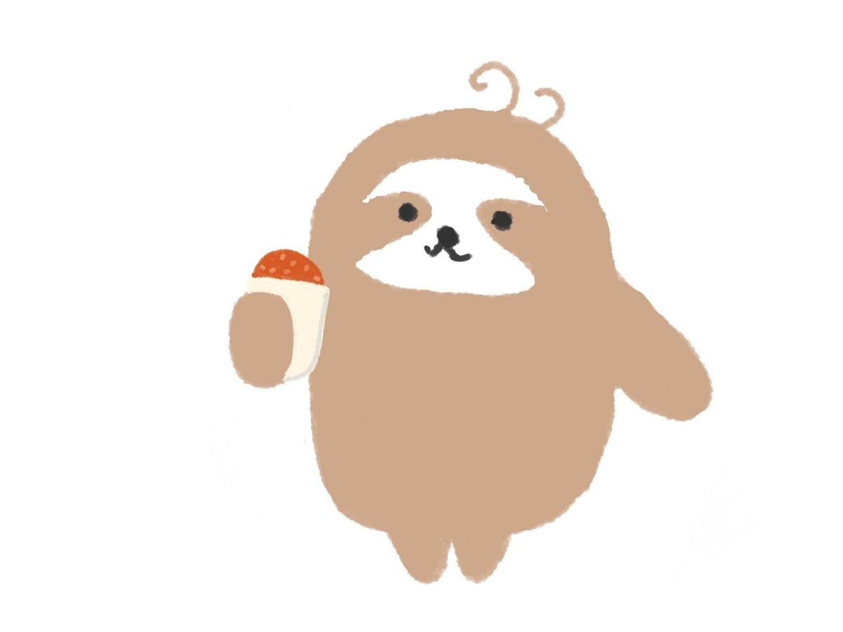 コロッケの日:コロッケを手に持ち食べようとしているナマケモノ