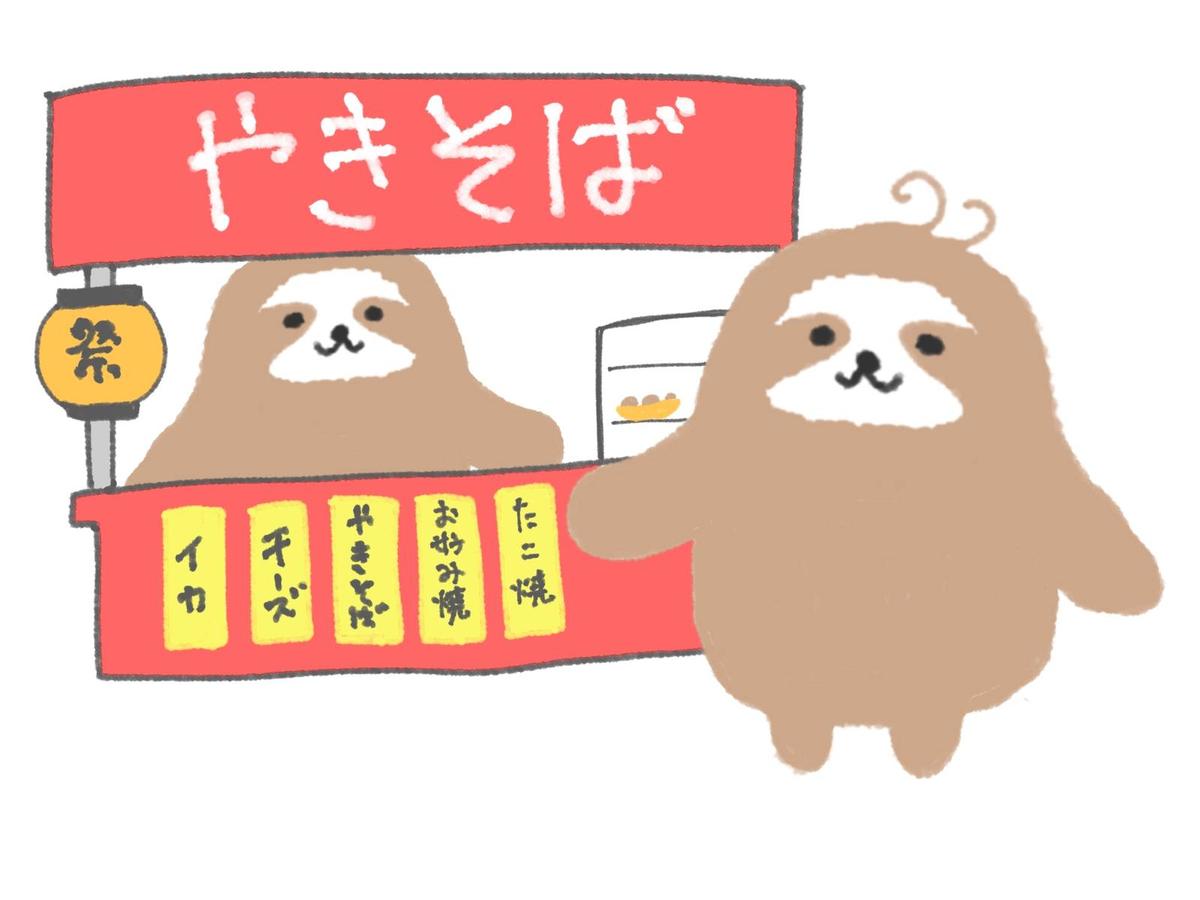 焼きそばなど鉄板系の料理をだす屋台で注文するナマケモノ