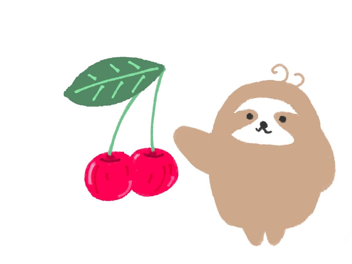 アセロラの日:アセロラの実と、紹介するように右手を上げているナマケモノのイラスト