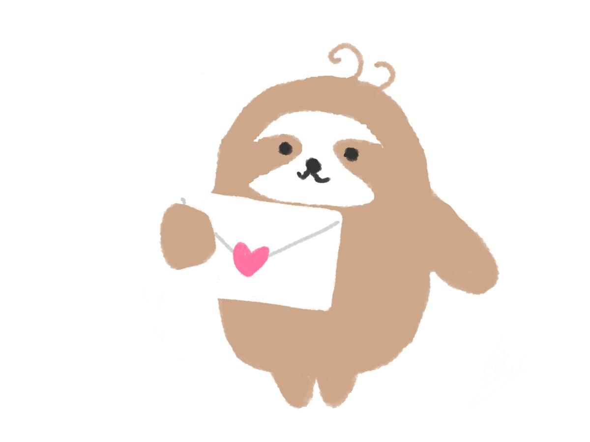 ラブレターの日:ハートのシールでとめた手紙を持つナマケモノのイラスト