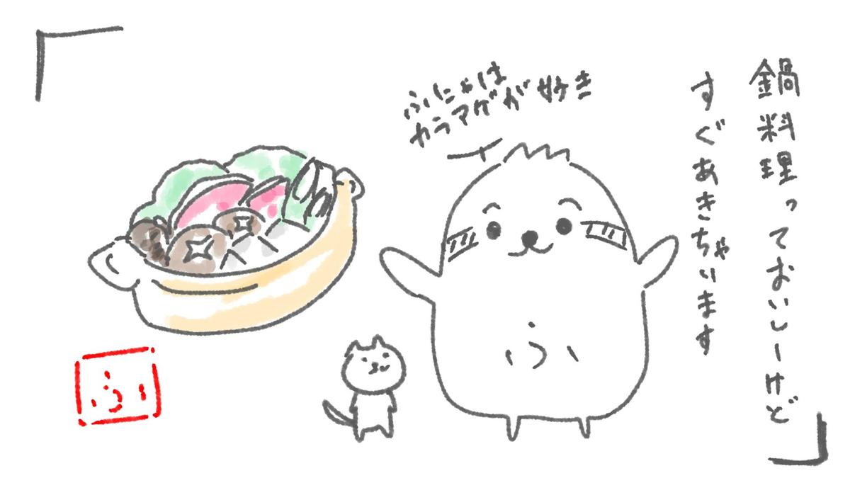 鍋の季節:鍋について語っているナマケモノのこどもふにゃまる。鍋は石狩鍋