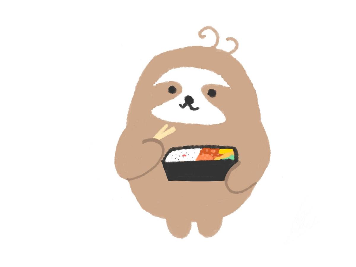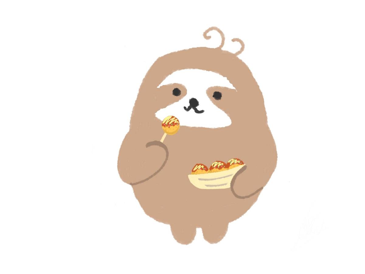こんぶの日:昆布で出汁をとるナマケモノ。鍋から箸で昆布をすくっている。