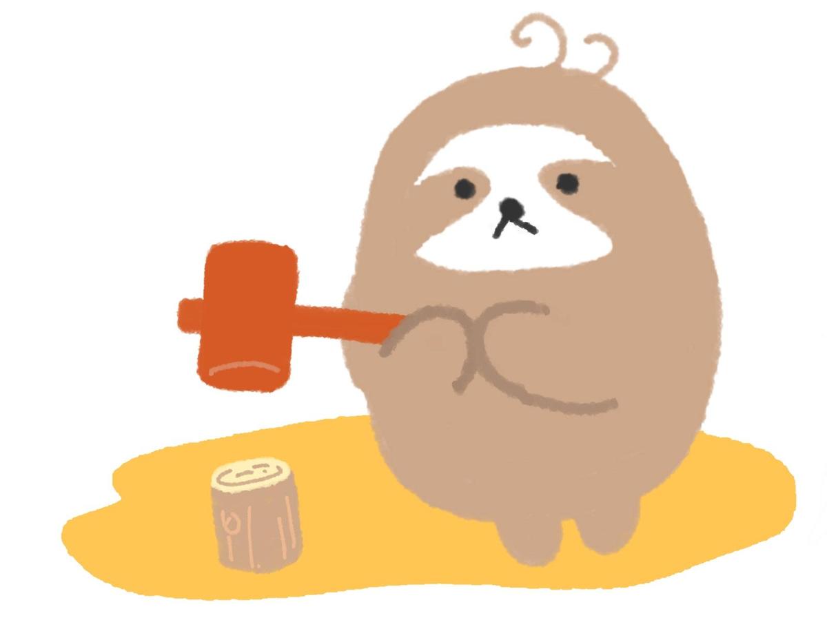 土木の日:木槌を持って杭を打つナマケモノのイラスト