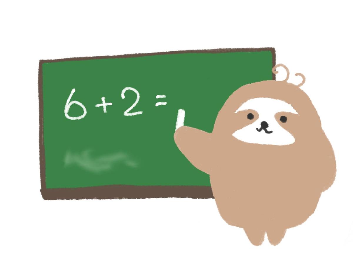 黒板に算数の問題を書き、「答えられる人」といっているような教師のナマケモノ