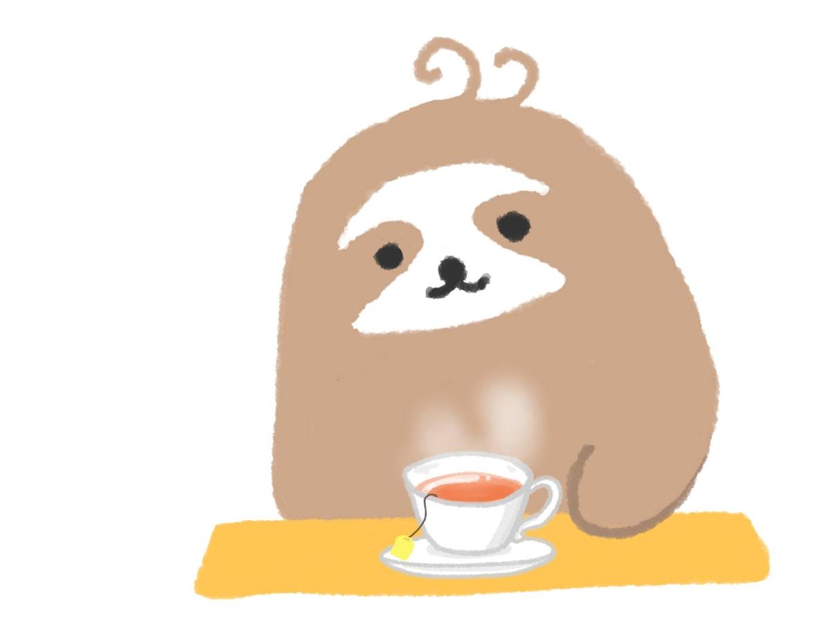 ケチャップとマスタードをかけたアメリカンドッグを持つナマケモノ