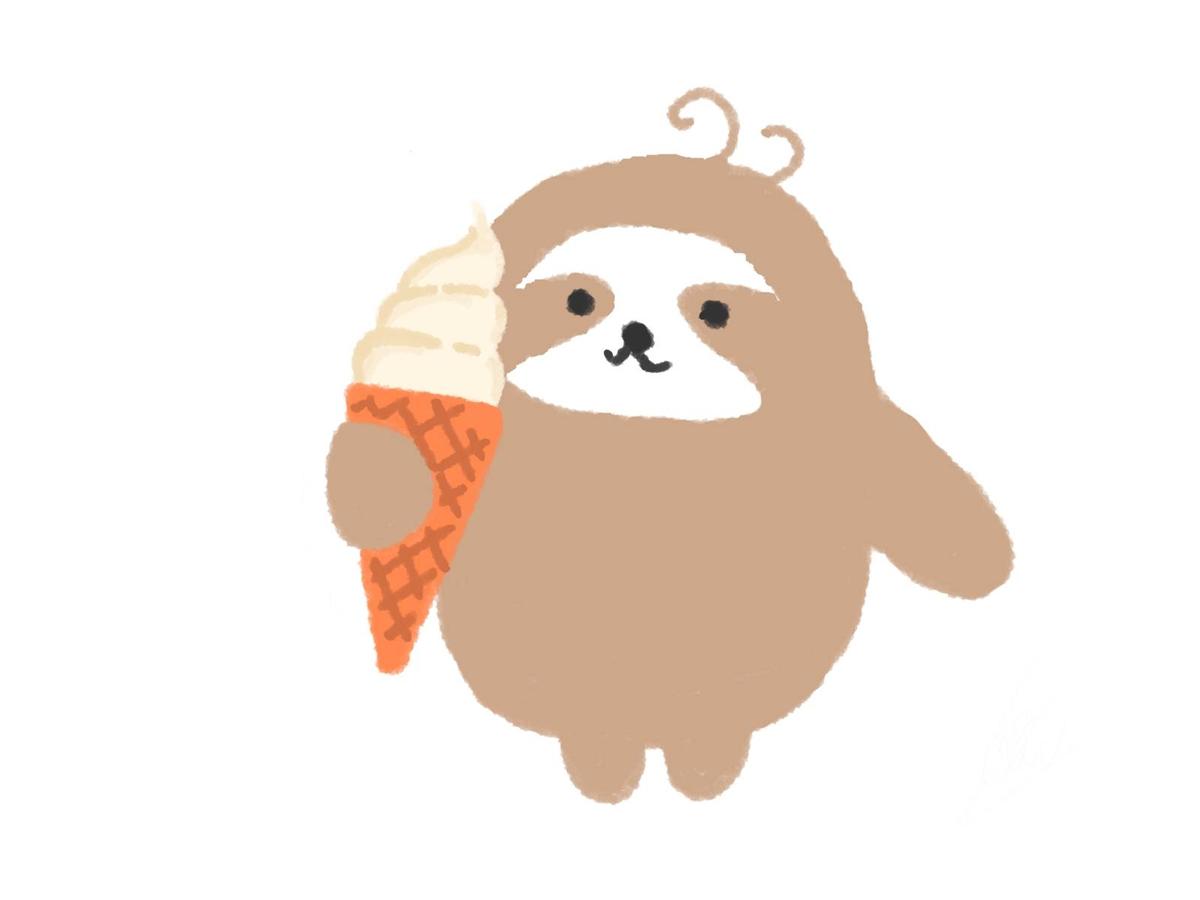 きのこ狩りを楽しむナマケモノ。黄色いかごには採ったきのこでいっぱい